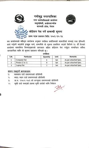 कोटेशन पेश गर्ने सम्बन्धी सूचना