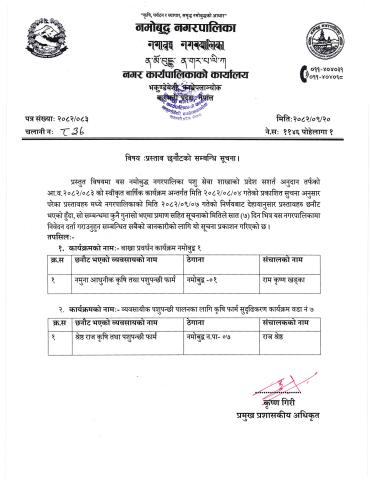 » प्रस्ताव छनौटको सम्बन्धि सूचना।