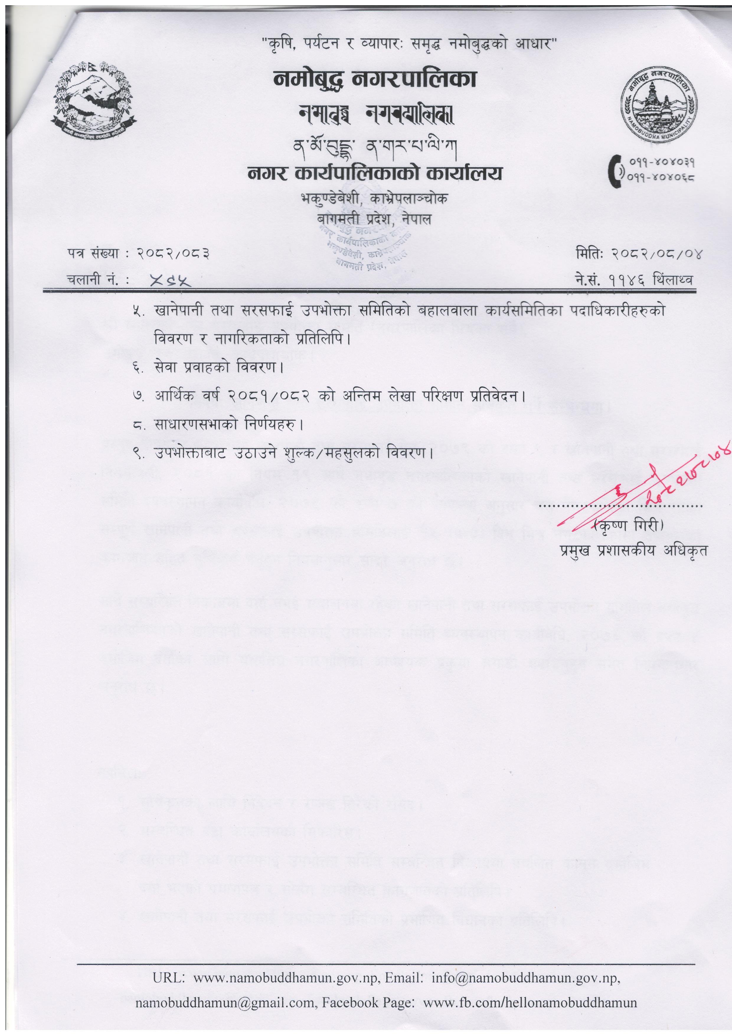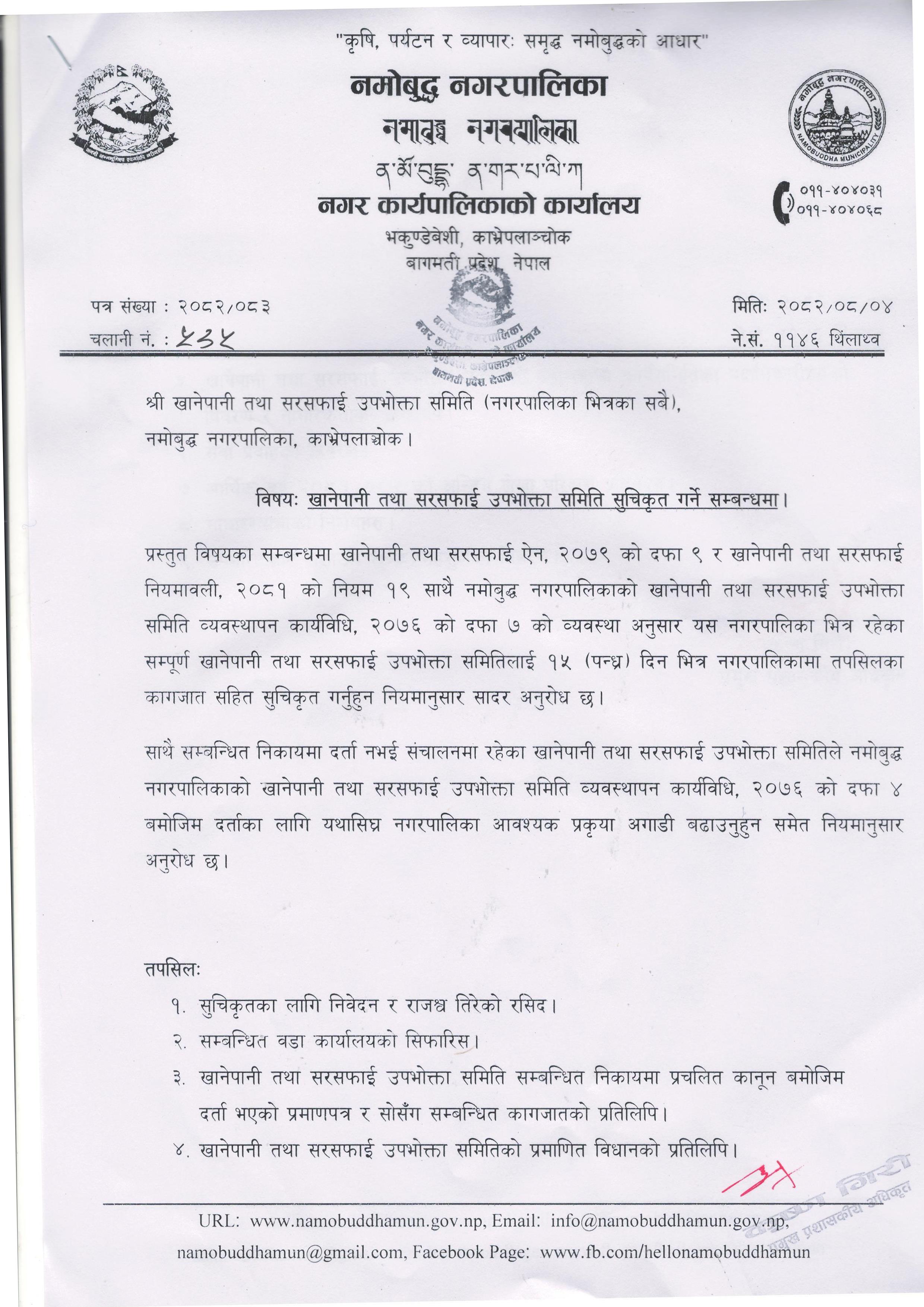खानेपानी तथा सरसफाई उपभोक्ता समिति सुचिकृत गर्ने सम्बन्धमा।