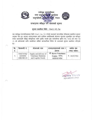 पशु सेवा कार्यालय, धुलिखेल, काभ्रेपलाञ्चोकद्वारा प्रस्ताव आव्हान सम्बन्धी सूचना।
