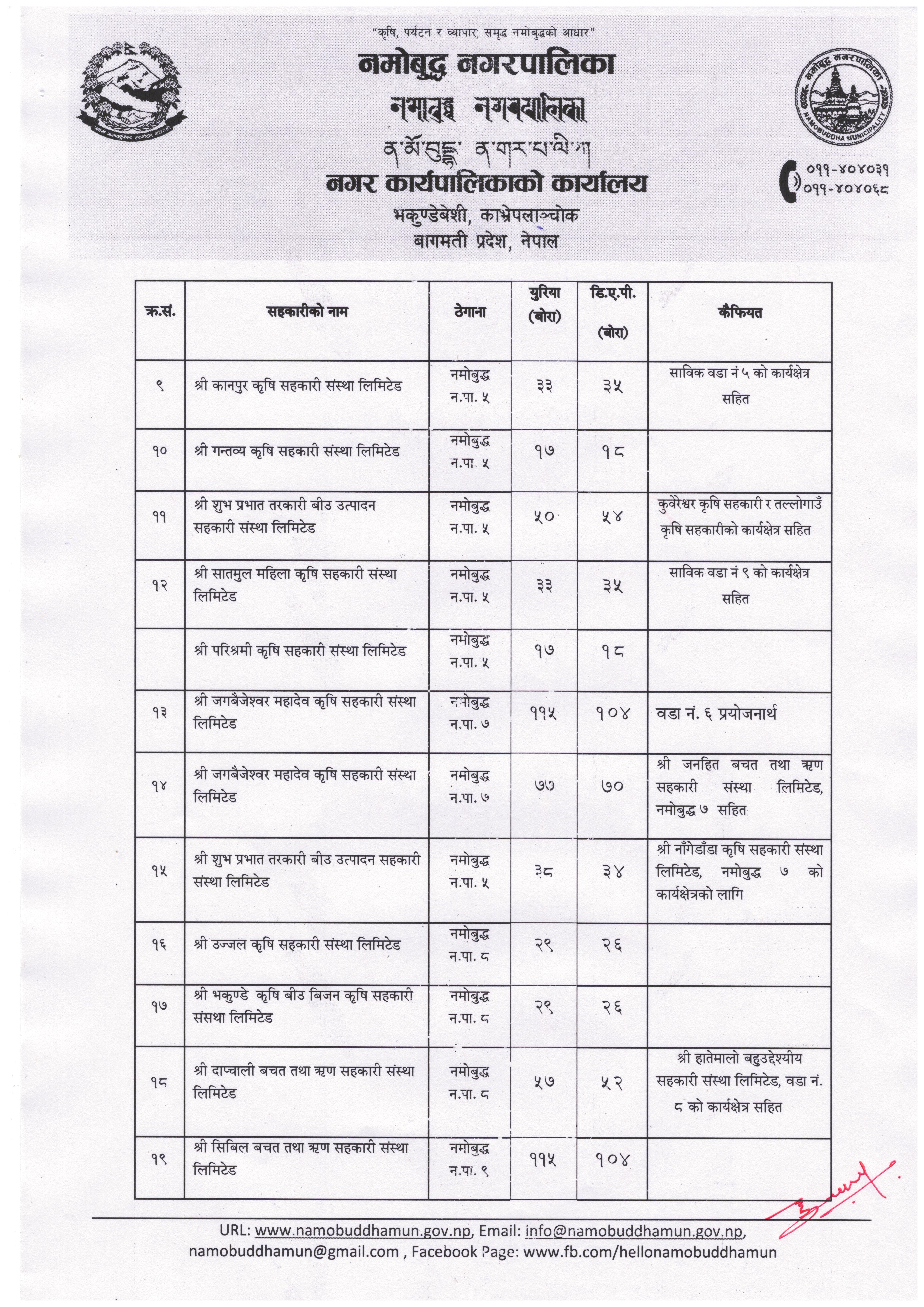 मलको कोटा निर्धारण सम्वन्धी नमोबुद्ध नगरपालिकाको सूचना !!!
