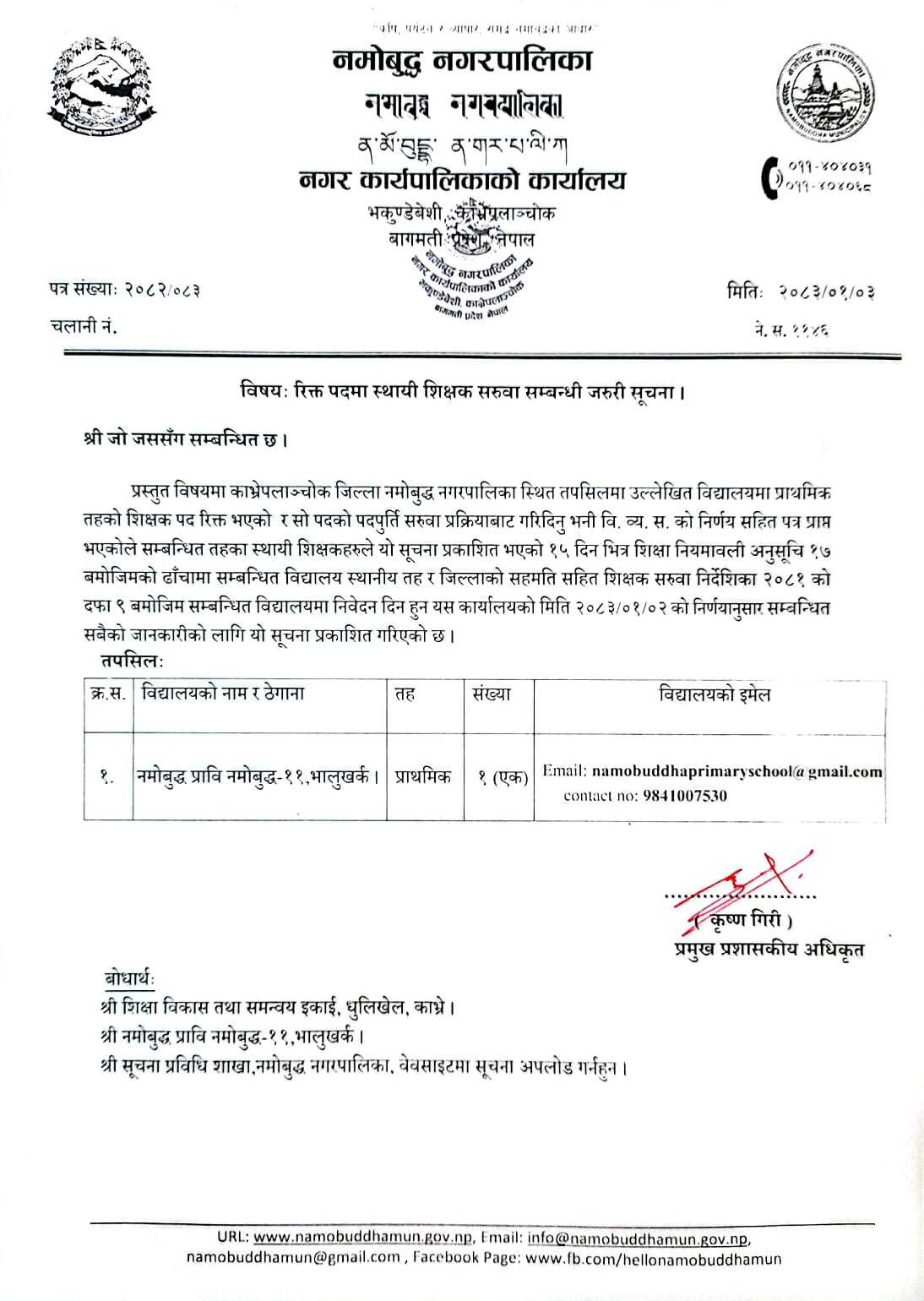 रिक्त पदमा स्थायी शिक्षक सरुवा सम्बन्धी जरुरी सूचना।
