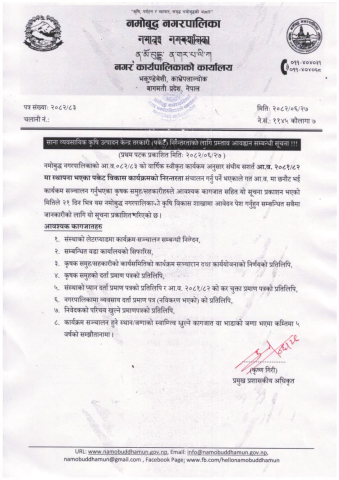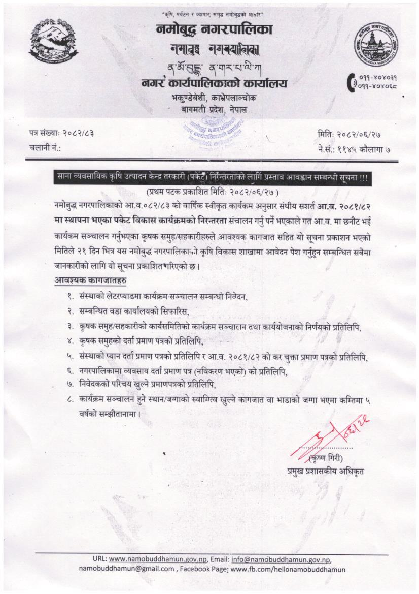 साना व्यवसायिक कृषि उत्पादन केन्द्र तरकारी (पकेट) निरन्तरताको लागि प्रस्ताव आवह्वान सम्बन्धी सूचना !!!