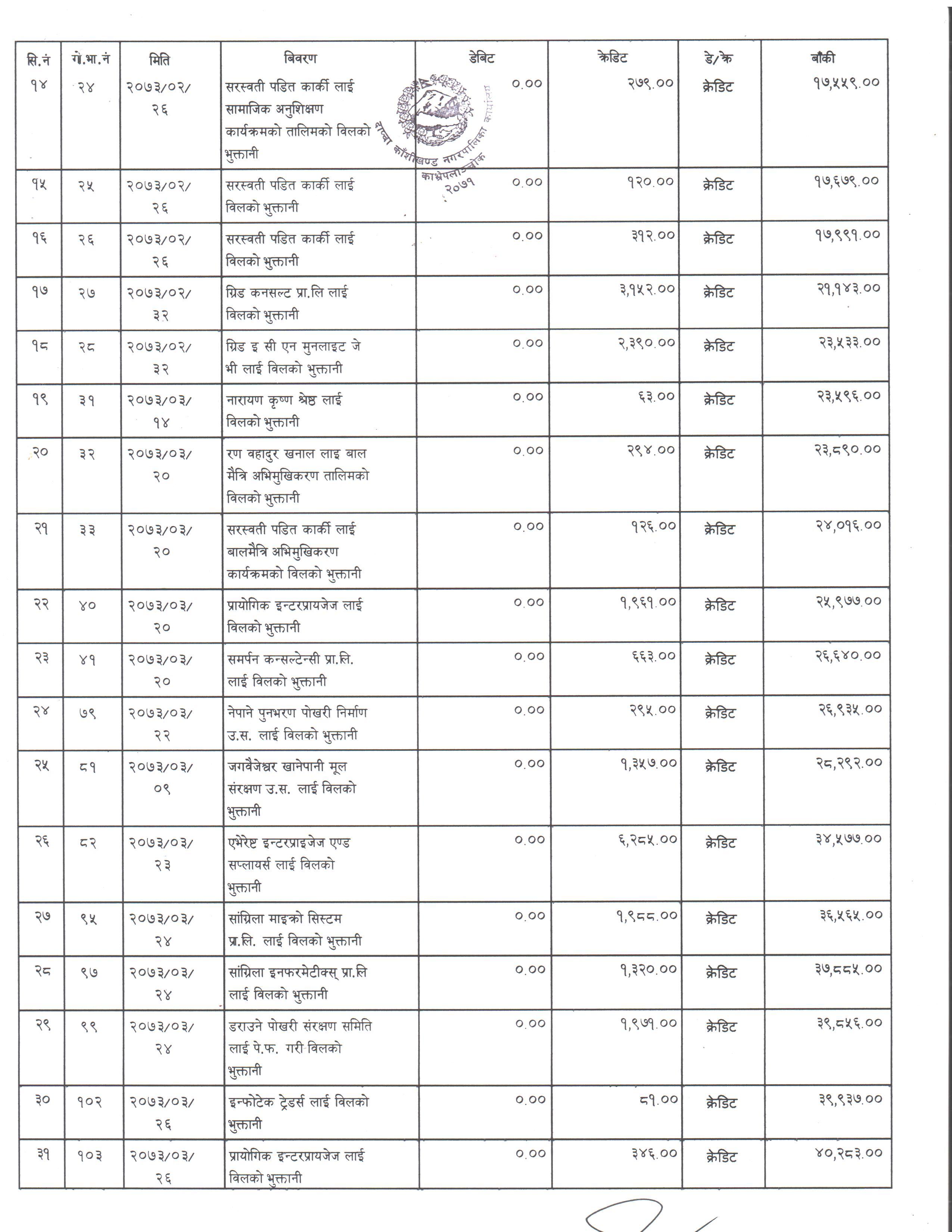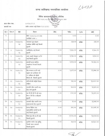 दाप्चा काशिखण्ड नगरपालिकाको तात्कालिन ६ गा.वि.स.मा विभिन्न व्यक्तिको नाउंमा बाँकी पेश्कि विवरण