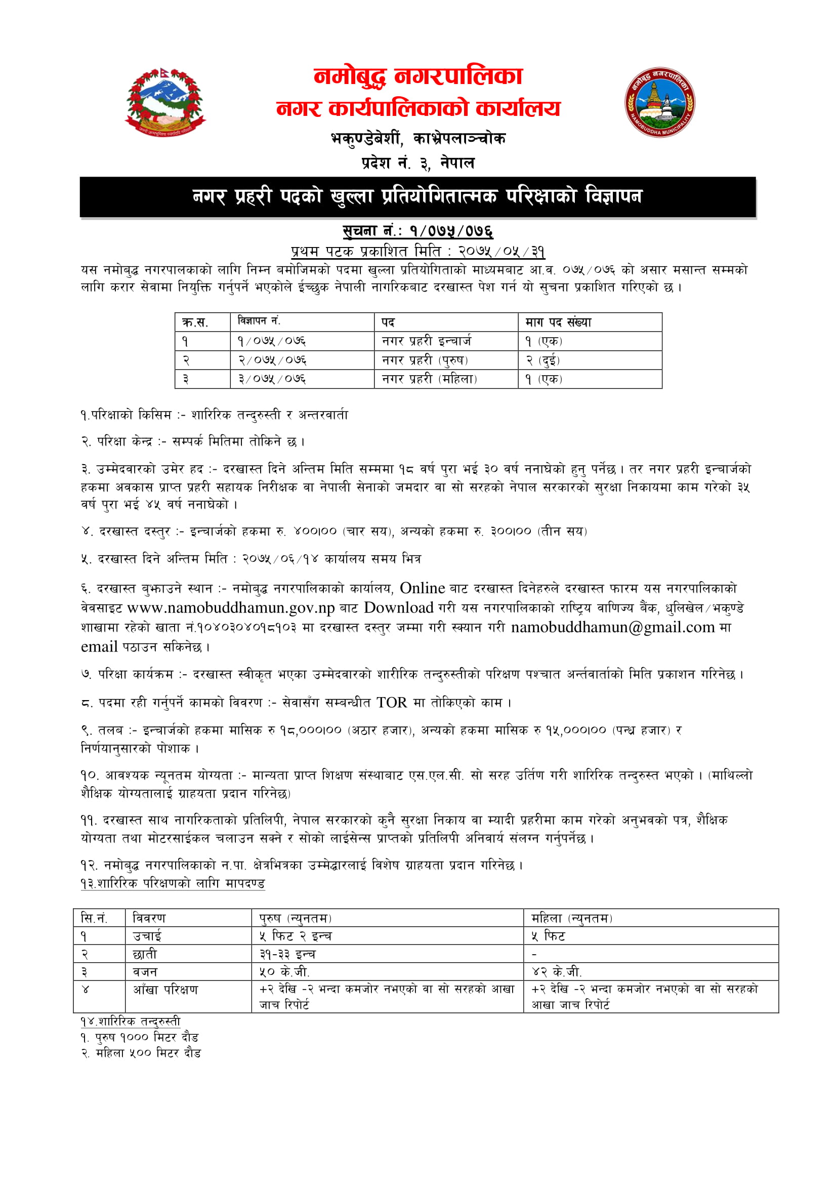 नगर प्रहरी पदको खुल्ला प्रतियोगितात्मक परिक्षाको विज्ञापन