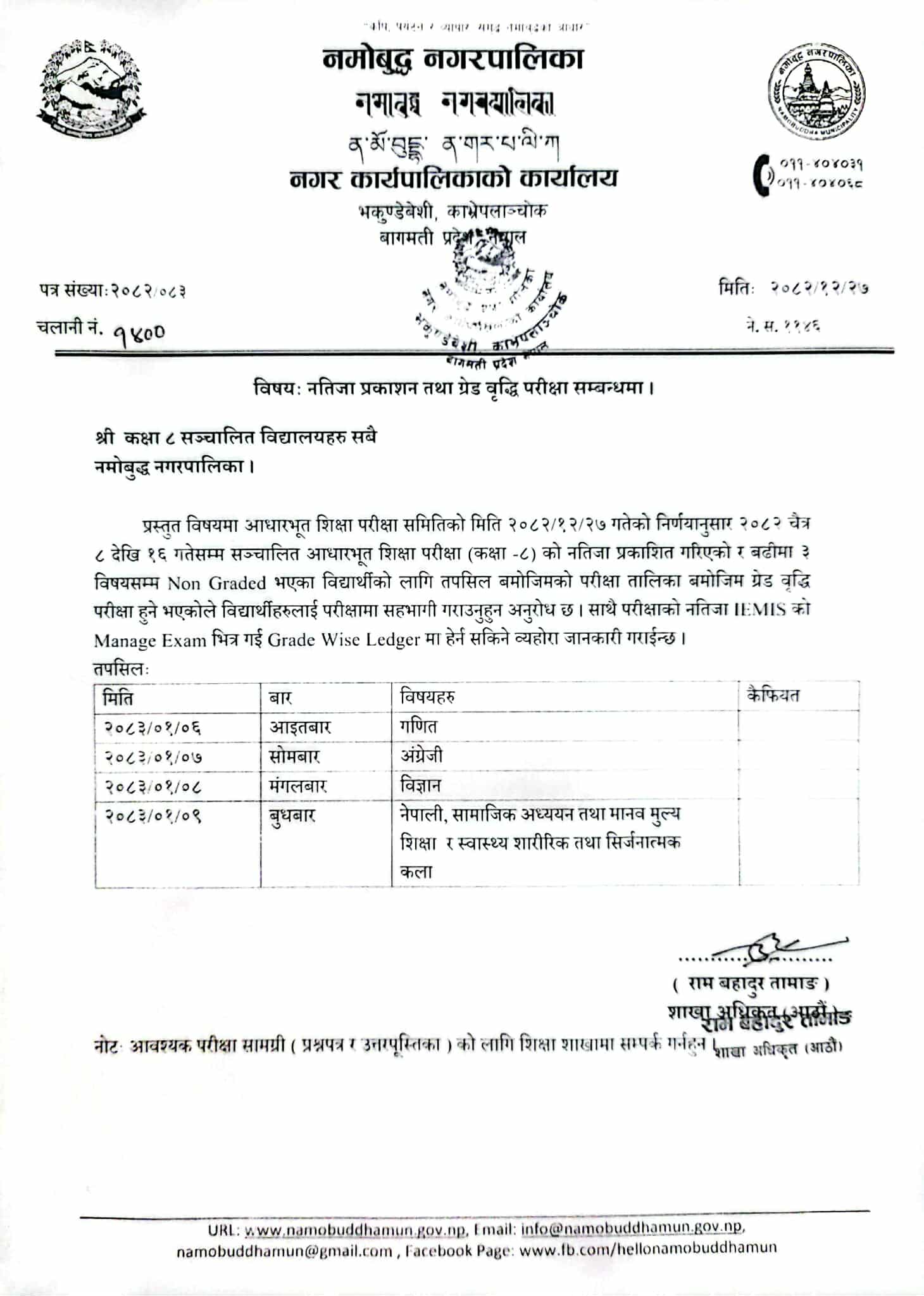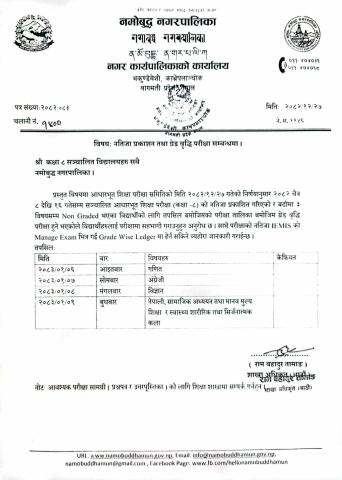 नतिजा प्रकाशन तथा ग्रेड वृद्धि परीक्षा सम्बन्धमा।