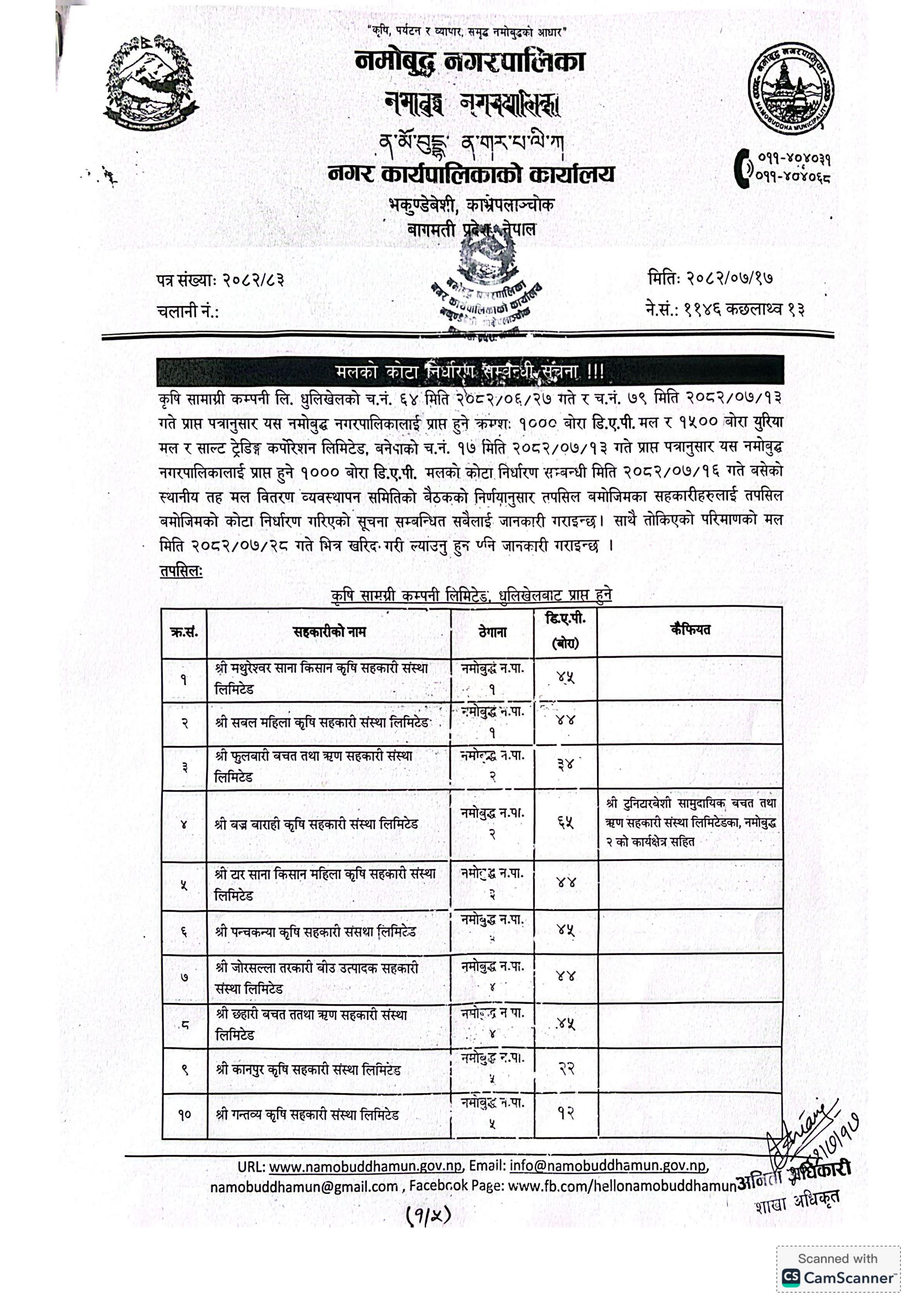 मलको कोटा निर्धारण सम्बन्धी सूचना !!!