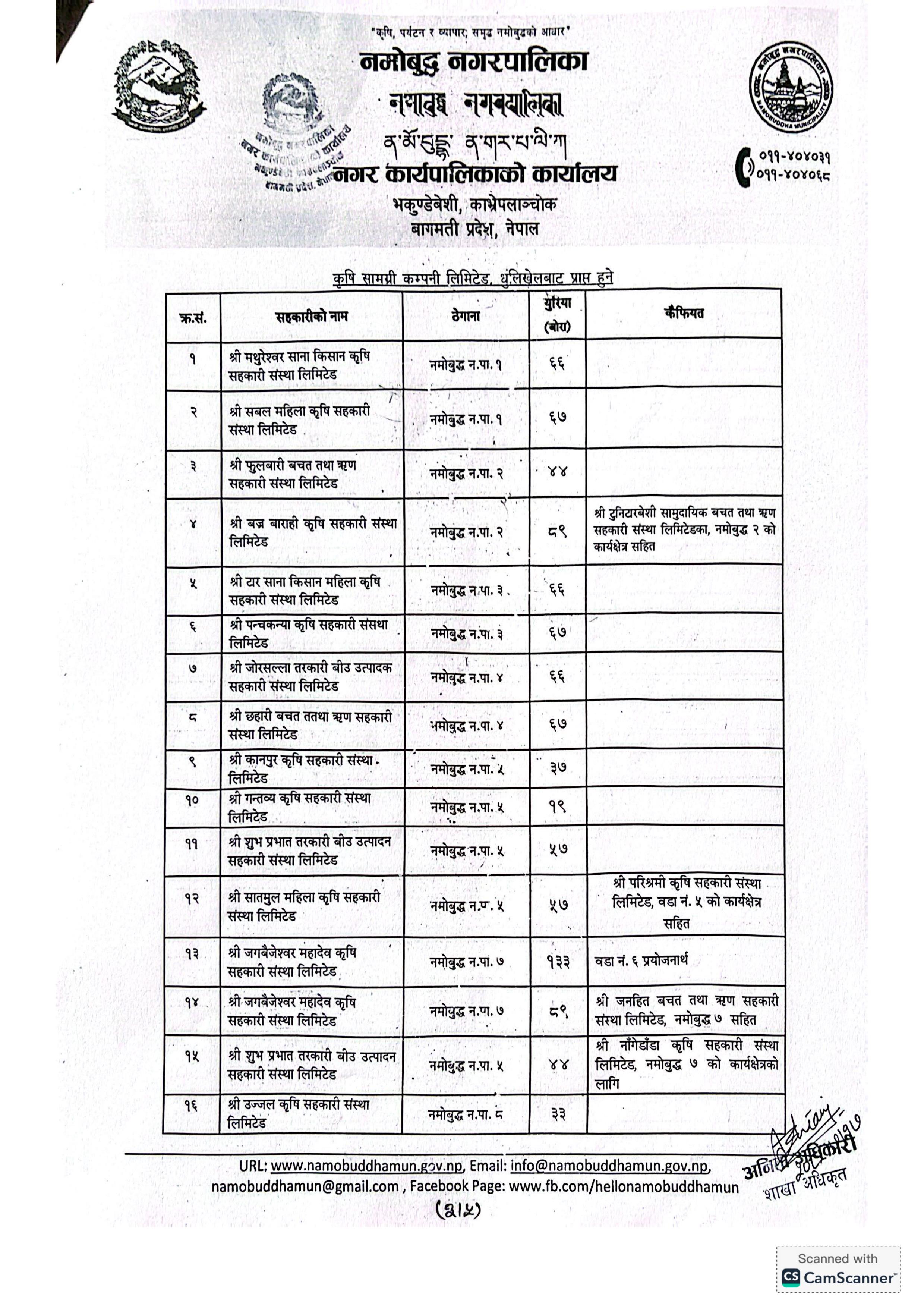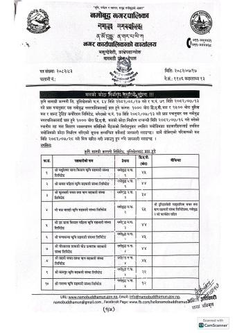 नमोबुद्ध नगरपालिका वडा नं ०८ अन्तर्गत अस्थायी आवास अनुदानको पहिलो किस्ता उपलब्ध गराईएको विवरण तथा दोश्रो किस्ता प्राप्त गर्न लाभग्राहीले पेश गर्नुपर्ने आवश्यक कागजातहरुको विवरण सम्बन्धमा।