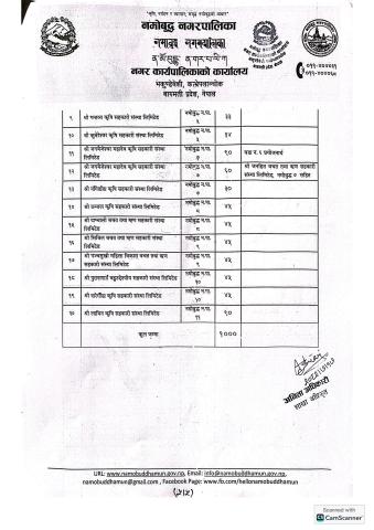 नमोबुद्ध नगरपालिका वडा नं ०७ अन्तर्गत अस्थायी आवास अनुदानको पहिलो किस्ता उपलब्ध गराईएको विवरण तथा दोश्रो किस्ता प्राप्त गर्न लाभग्राहीले पेश गर्नुपर्ने आवश्यक कागजातहरुको विवरण सम्बन्धमा।