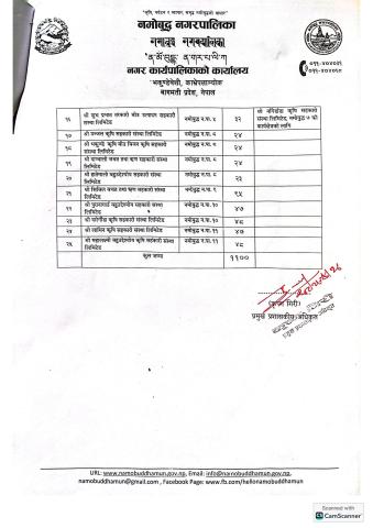 नमोबुद्ध नगरपालिका वडा नं ०१ अन्तर्गत अस्थायी आवास अनुदानको पहिलो किस्ता उपलब्ध गराईएको विवरण तथा दोश्रो किस्ता प्राप्त गर्न लाभग्राहीले पेश गर्नुपर्ने आवश्यक कागजातहरुको विवरण सम्बन्धमा।