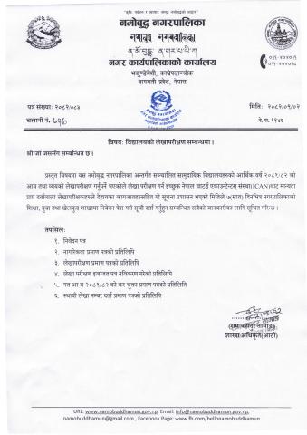विद्यालयको लेखापरीक्षण सम्बन्धमा ।